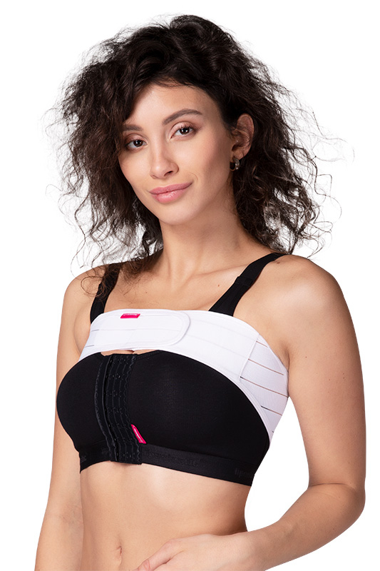 Stabilizační prsní pás určený pro použití během pooperační péče po augmentaci prsou. Rovný střih, zapínání na suchý zip.