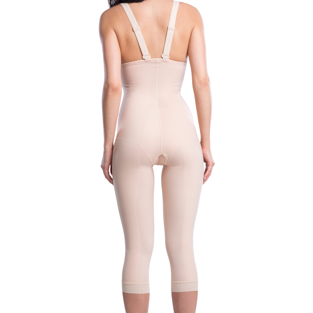 Bandáž nad kolena - se zapínáním na háčky a očka v přední části, s odnímatelnými a nastavitelnými ramínky a hygienickým otvorem