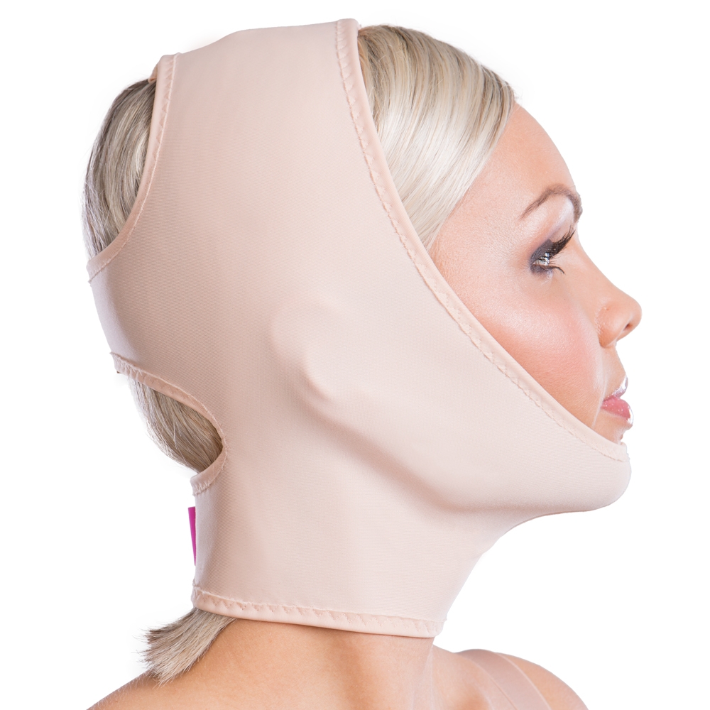 • Vhodná k použití v průběhu celého období pooperační fáze po plastickém či estetickém zákroku obličeje, uší, krku, brady a vsazení bradového implantátu
