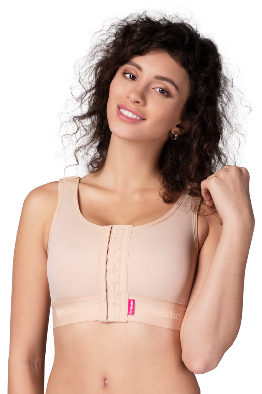 Jak správně obléknout LIPOELASTIC® pooperační podprsenku s předním zapínáním na háčky?