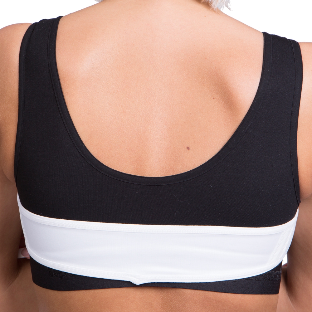 Stabilizační prsní pás určený pro použití během pooperační péče po augmentaci prsou. Rovný střih, zapínání na suchý zip.